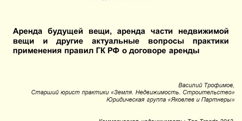- Передача арендатором арендодателю вещи, предусмотренной договором, в собственность или в аренду;
