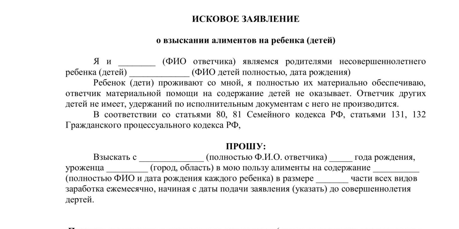 - Желаемый размер алиментов на ежемесячное содержание несовершеннолетних детей;