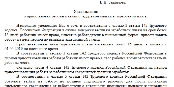 Если на жалобу не ответят или средства не будут выплачены в течение 15 дней после письма, работник имеет право не выходить на работу. Однако это не считается прогулом. Однако следующие работники не могут приостанавливать свой трудовой процесс:
