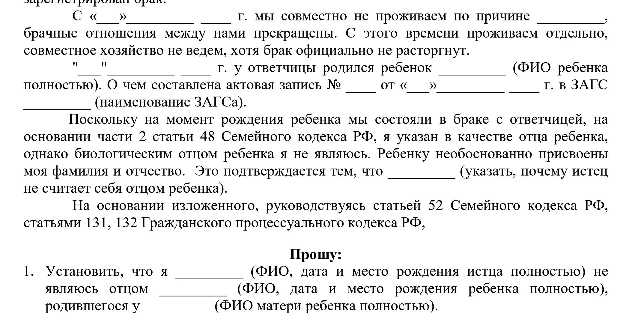 - Биологический отец, подав иск против родителя, записывается в книгу записей как отец.