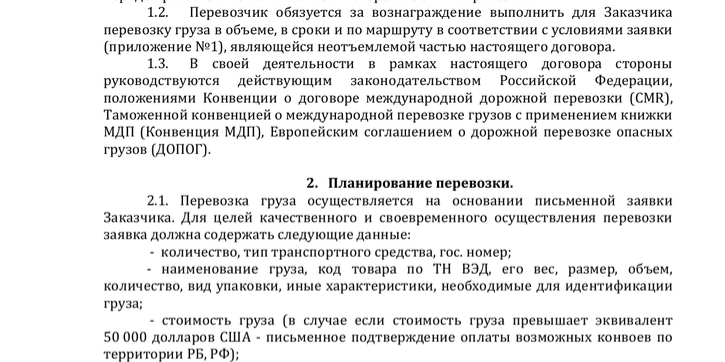 Договор международной перевозки грузов представляет собой соглашение между отправителем или получателем и перевозчиком о доставке груза в пункт назначения за определенную плату. Он выставлен по счету.