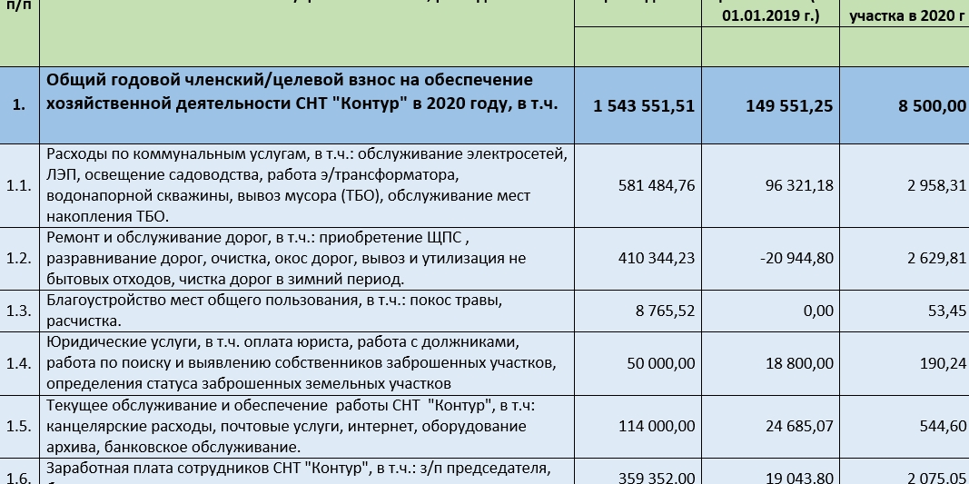 | 1.1 | Заработная плата председателя СНТ: ___ руб. в месяц * 12 месяцев | |