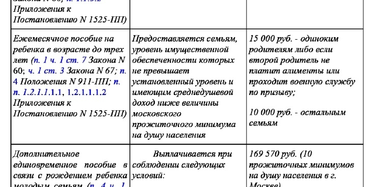 Рост размеров единовременных выплат, предоставляемых при рождении ребенка, можно проследить по следующей таблице: