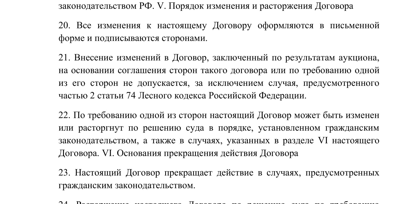 Если на торгах по аренде участков лесного фонда присутствует только один участник, то он автоматически признается победителем, он обязуется заключить договор аренды в течение 20 дней.