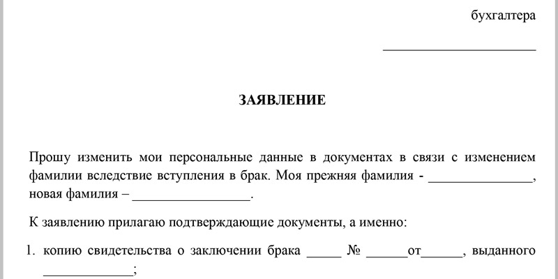 В «шапке» документа на смену фамилии необходимо указать: