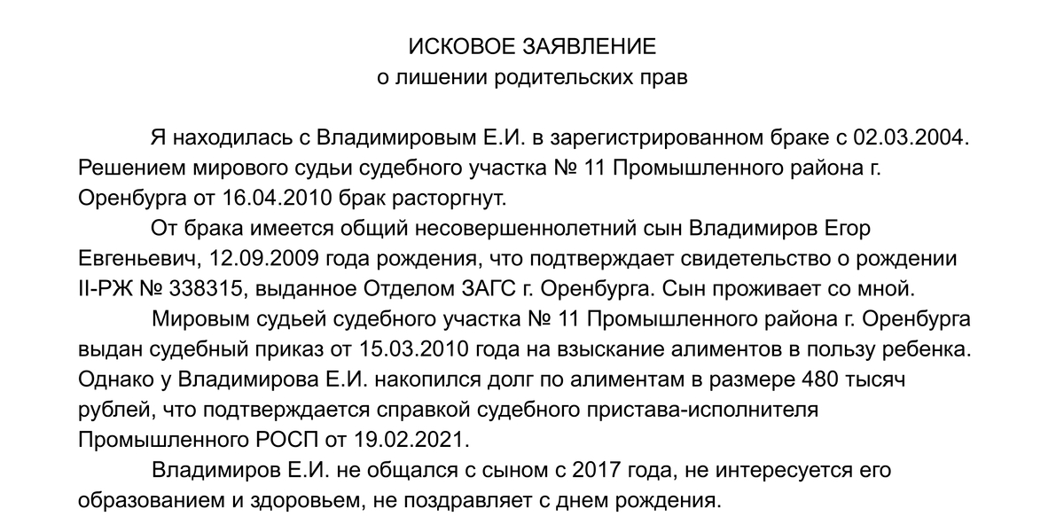 Образец и правила составления искового заявления о лишении родительских прав в 2021 году