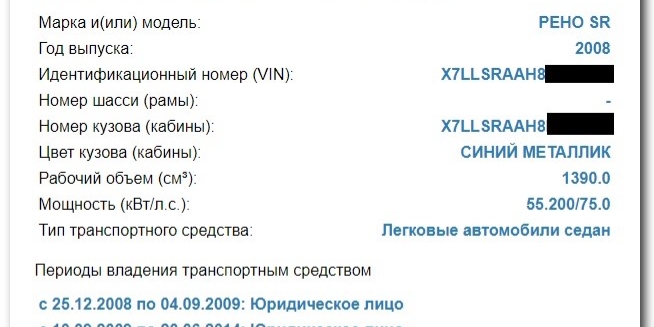 Узнать информацию об автомобиле по фамилии владельца не получится. Также нужно указать VIN-код, номер шасси или кузова. Информация здесь раскрыта более подробно, чем на сайте ГИБДД. При проверке истории регистрационных действий можно узнать:
