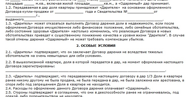 - Полностью, без ошибок и пропусков пунктов заполните акт дарения.