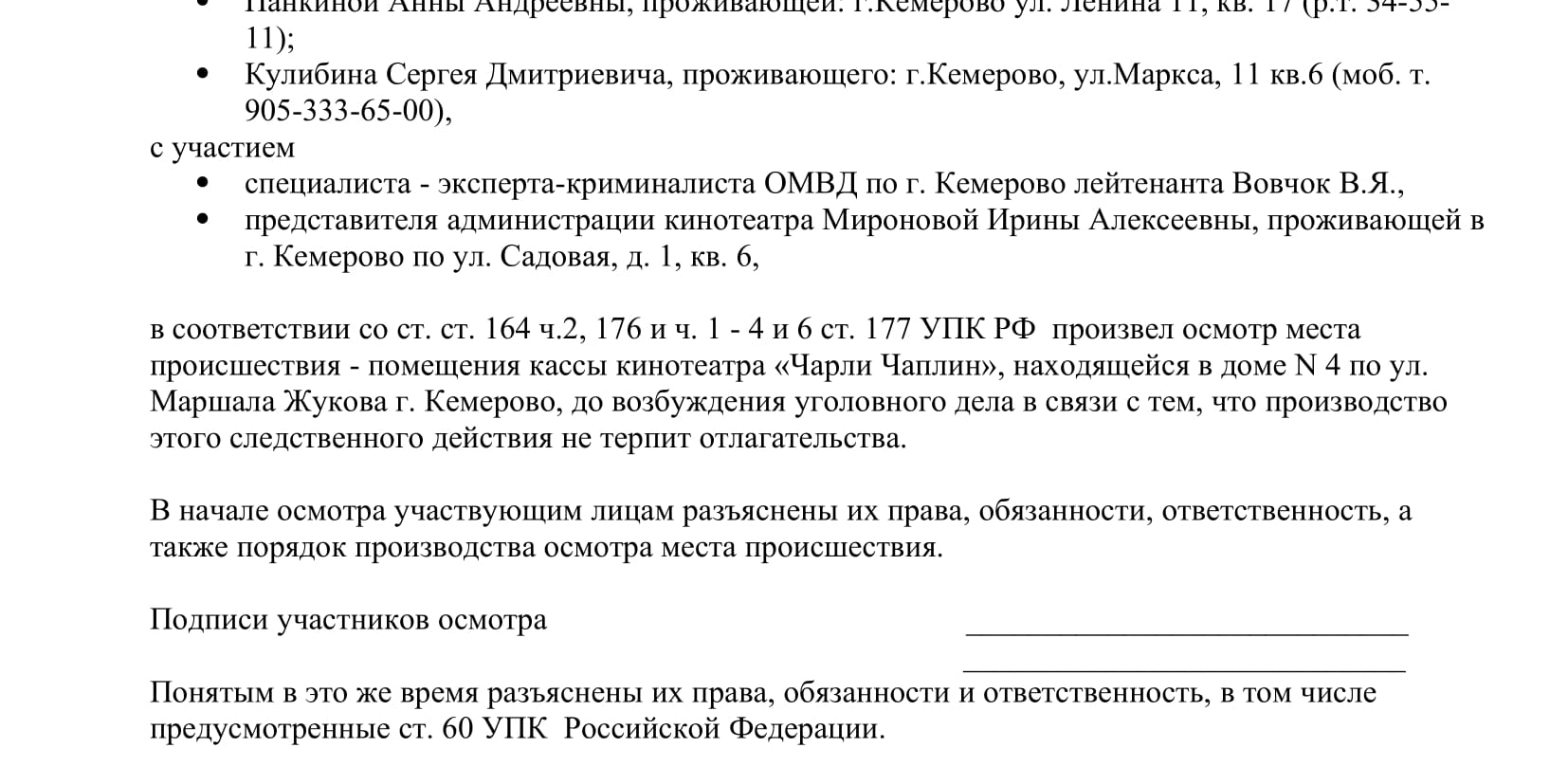 Скачать бланк акта осмотра места происшествия (DOC, 27 КБ).