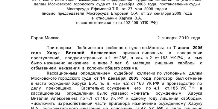 Форма и содержание кассационной жалобы