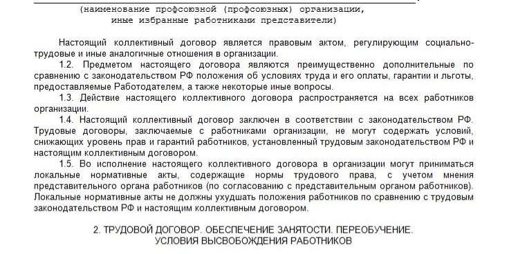 Разница лишь в сторонах, подписавших коллективный договор. Со стороны юридического лица выступает руководитель компании. А коллектив представляет профсоюзная организация, если наличие таковой предусмотрено ведомственными актами, или отдельная группа работников учреждения, назначаемая самими работниками путем выборов. Исходя из того, что представители трудового коллектива избираются самими работниками, содержание утвержденного ими документа является обязательным для всех без исключения работающих в компании лиц.