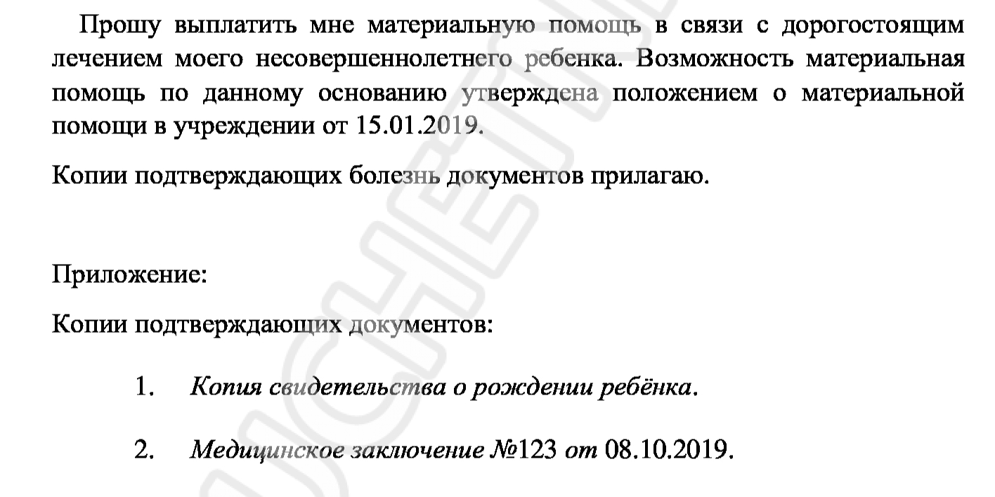 Работник должен обратиться за материальной помощью в связи со смертью отца или другого родственника. Письменное обращение является основанием для перечисления денег.