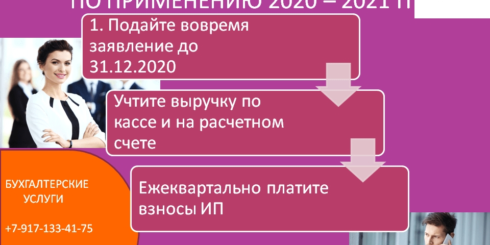 Для получения патента предприниматель должен подать заявление о своем намерении в налоговую инспекцию не менее чем за 10 дней до начала применения СНВ. Кроме того, установлено, что данные организации освобождаются от обязанности по представлению налоговой декларации за отчетные периоды 2020 и 2021 годов, а также уплате налога за налоговые периоды 2020 и 2021 годов не позднее 28 марта 2022 года.