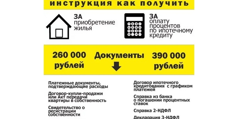 Так, за счет вычета за покупку квартиры в ипотеку человек может вернуть до 650 тысяч рублей (260 тысяч + 390 тысяч). Супруги, состоящие в зарегистрированном браке, могут претендовать на двойной вычет и получить обратно до 650 тысяч рублей на каждого, то есть до 1,3 млн рублей на двоих.
