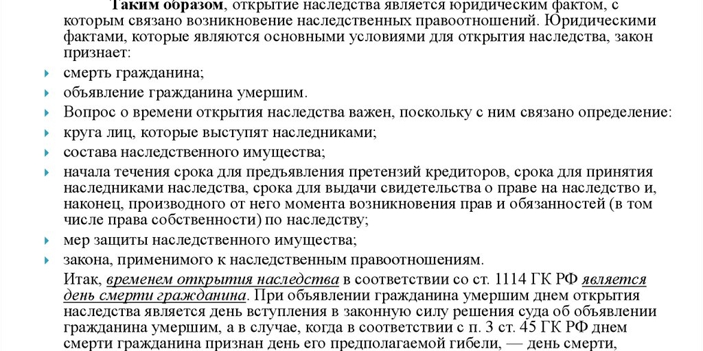 Возникающие права на наследство юридически реализуются в соответствии с несколькими принципами, закрепленными в Гражданском кодексе Российской Федерации:
