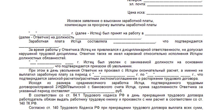 - Иск составляется. В нем указывается период работы на предприятии, ФИО. директора (ответчика), должность истца. Подробно описывается ситуация: при каких обстоятельствах компенсация не выплачивается, ссылки на законодательные нормы, указание на отказ руководителя от выплаты. В конце предъявляются претензии: выплатить компенсацию и неустойку по ней. Обязательно наличие даты составления и подписи инициатора.