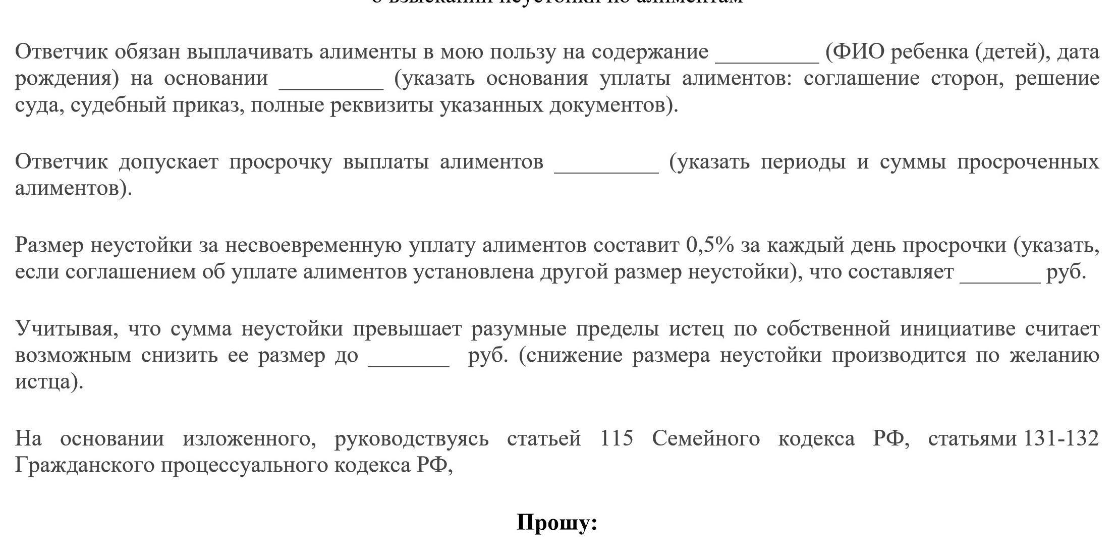Скачать образец искового заявления о взыскании неустойки по алиментам