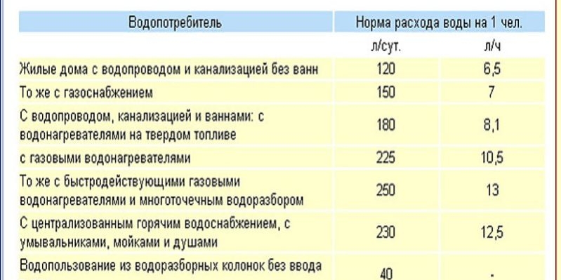 Нормы водопотребления были введены правительством страны для того, чтобы мотивировать людей на установку счетчиков. Ведь они значительно завышены и большинство жителей потребляют гораздо меньше воды. Например, по норме в месяц один жилец потребляет 6,935 кубометров или 200 литров холодной воды в сутки. Стандартная ванна вмещает 250 литров воды. Не все люди принимают его ежедневно.