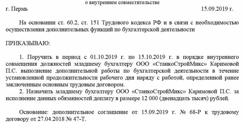 Трудовой договор по внутреннему совместительству (содержание, особенности, образец)