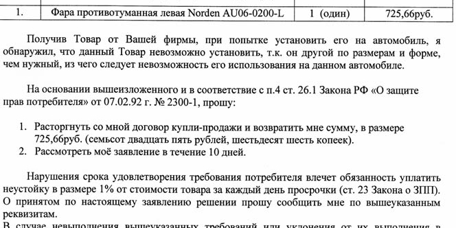 Также истец не нарушил сроки обращения к продавцу с соответствующими требованиями и подал заявление на следующий день после получения товара. На основании этого судья принял решение об удовлетворении исковых требований.