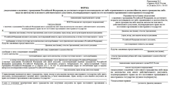 Форма для подачи уведомления в МВД