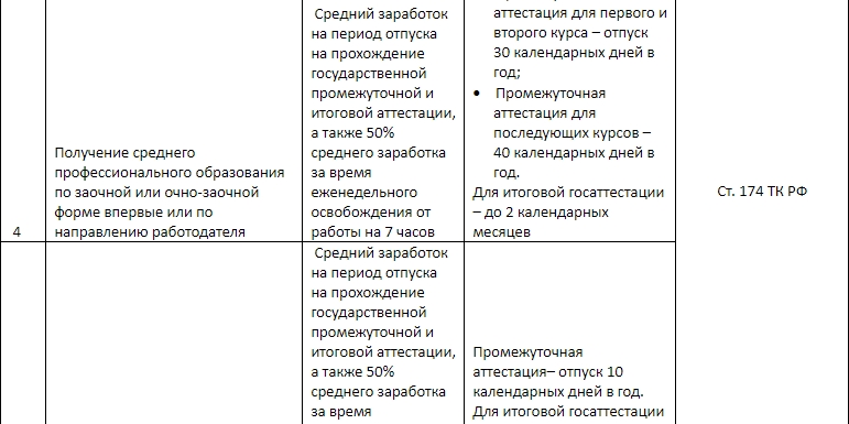 Схема одинакова для рабочего времени, работник получает заработанные деньги, а учеба рассчитывается исходя из среднего заработка.