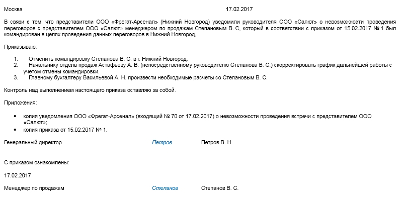 Вас также может заинтересовать: Как отменить командировку?