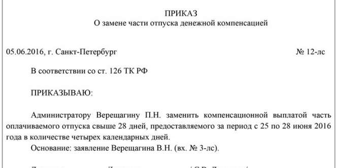 Замена с денежной компенсацией без увольнения допустима только в части периода отпуска свыше 28 календарных дней (ст. 126 ТК РФ). Происходит это по просьбе сотрудника. Допускается замена деньгами дней, превышающих основной отпуск. Только те категории работников, которые имеют право на дополнительные дни отдыха (инвалиды, учителя, врачи, работники Севера и др.), имеют право на получение денежного вознаграждения вместо отдыха. Или если работодатель предусмотрел дополнительные дни для отдыха в локальных актах компании. Но это верно не во всех случаях: