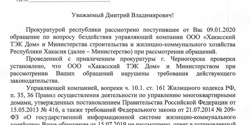 Ответ на жалобу гражданина