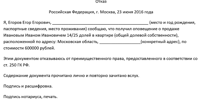 При этом данное действие может быть совершено им как на безвозмездной, так и на возмездной основе. Получается, что можно отказаться в пользу матери, сестры и других родственников, а также чужих. Законодатель не ограничивает это действие.