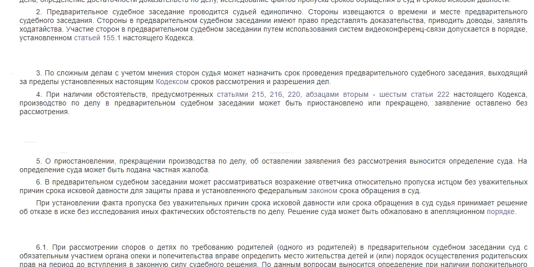 Предварительное рассмотрение дела имеет следующие особенности: