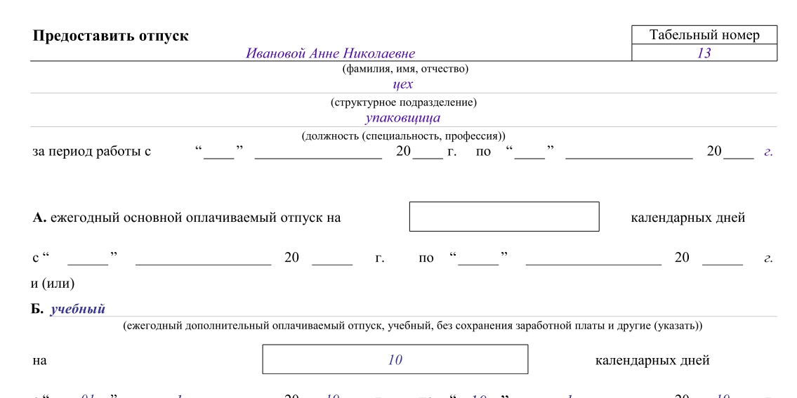 Графу «За период работы» здесь заполнять не нужно. Это конкретный порядок: учебный отпуск с сохранением содержания является гарантией для всех: и для студента (чтобы он сохранил свое рабочее место), и для работодателя (чтобы он соблюдал требования закона).
