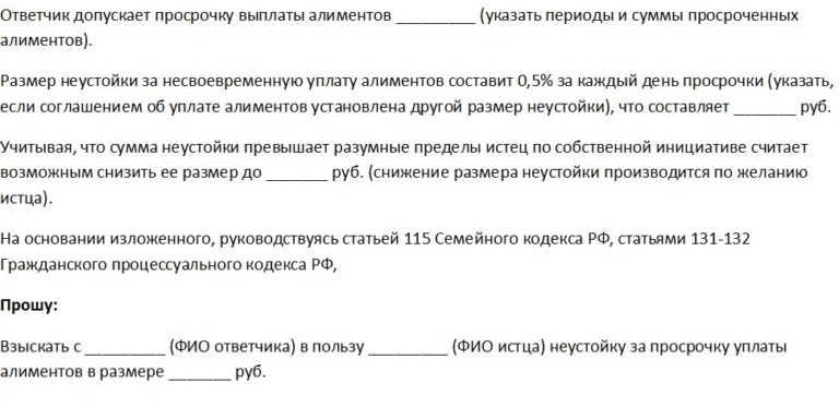 Поэтому, если по иску, предметом которого является требование об уплате неустойки по алиментам, государственная пошлина не уплачена, то существует вероятность того, что такое исковое заявление будет оставлено без движения на определенный срок для устранения неустойки. недостатки.