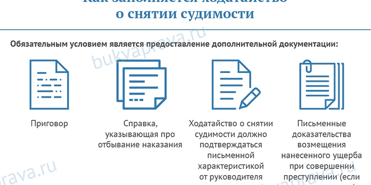 Когда наличие судимости препятствует чему-либо, негативно влияющему на жизнь гражданина и его семьи, целесообразно приложить документы, подтверждающие эти факты. Это может быть трудоустройство, выезд за границу и т.д.
