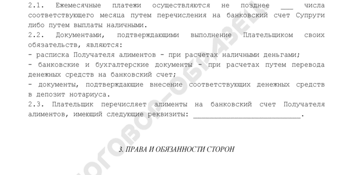 Если алиментные выплаты носят имущественный характер, то плательщик алиментов должен подробно описать имущество, которое он передаст получателю. Он также должен переоформить имущество на получателя и совершить все действия, связанные с полной передачей прав на него получателю алиментов.