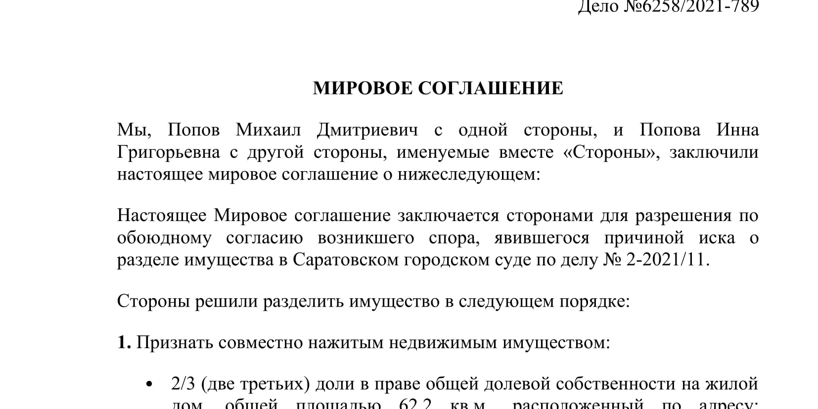 - Перечень договоренностей между сторонами: указание предполагаемого адреса проживания несовершеннолетнего, порядок общения с ним второго родителя;