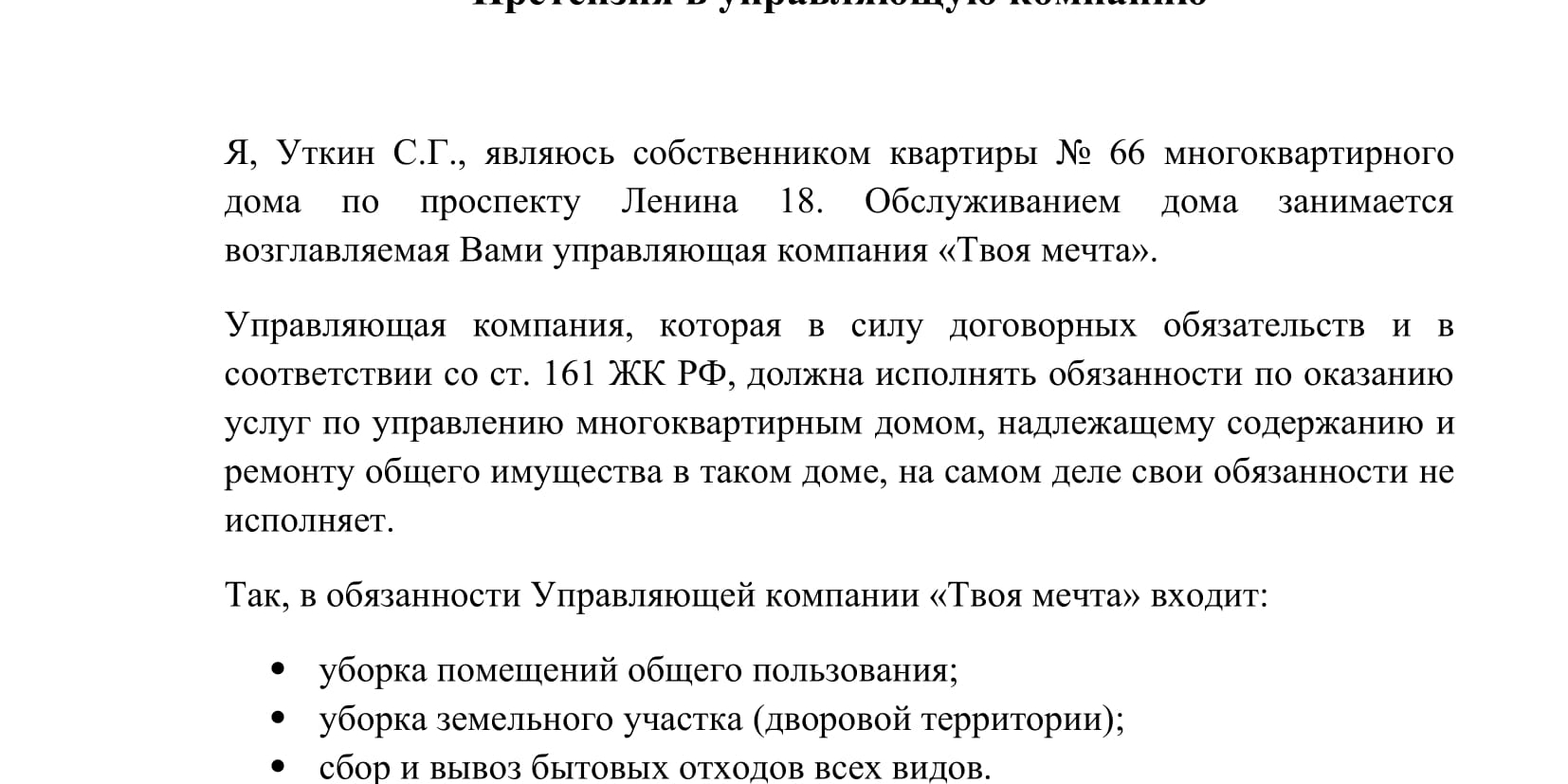 Как написать претензию в управляющую компанию?
