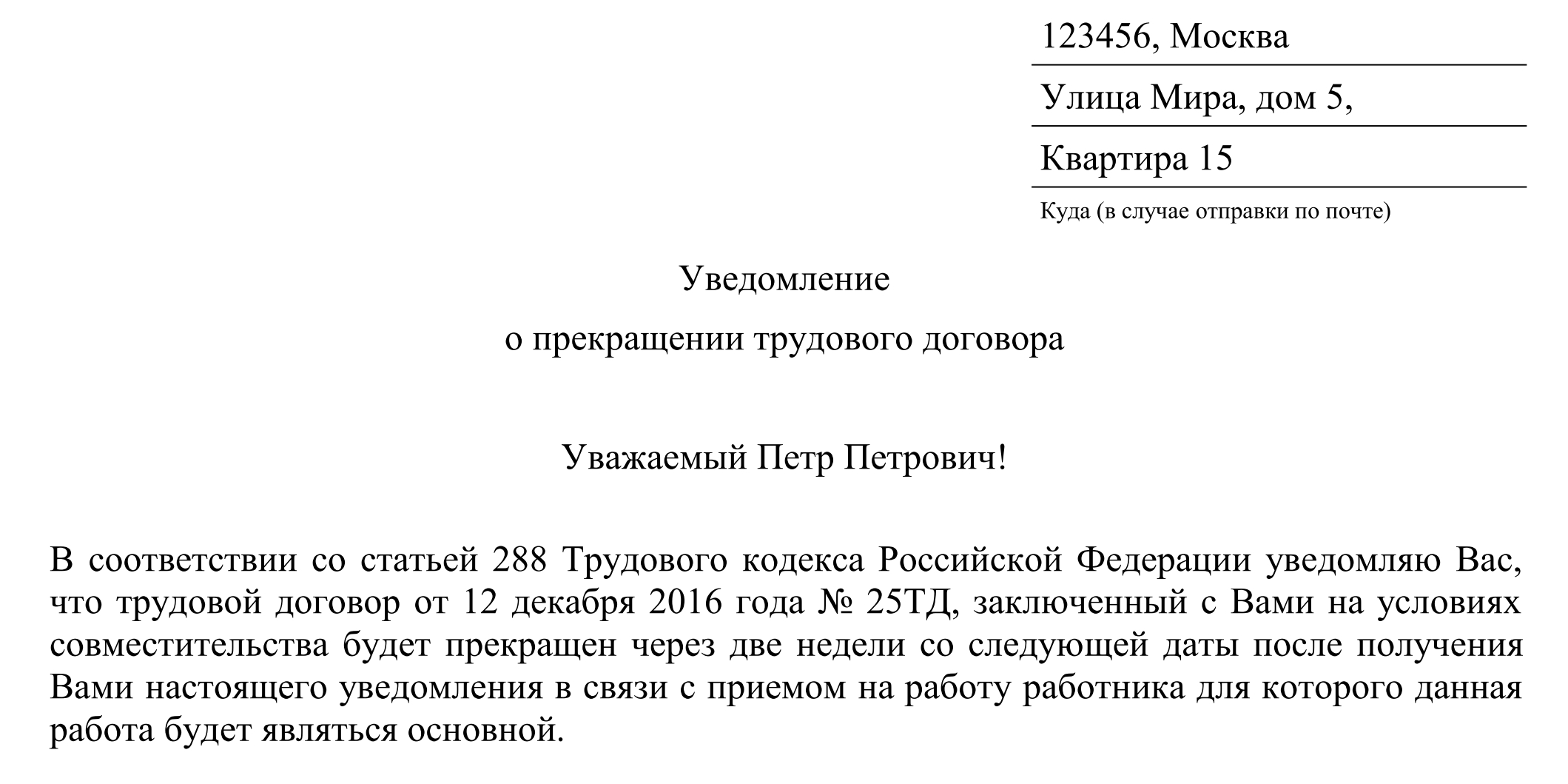 В случае ликвидации предприятия или сокращения штата работников, для расторжения Договора необходимо уведомить Работника за 2 (два) месяца.