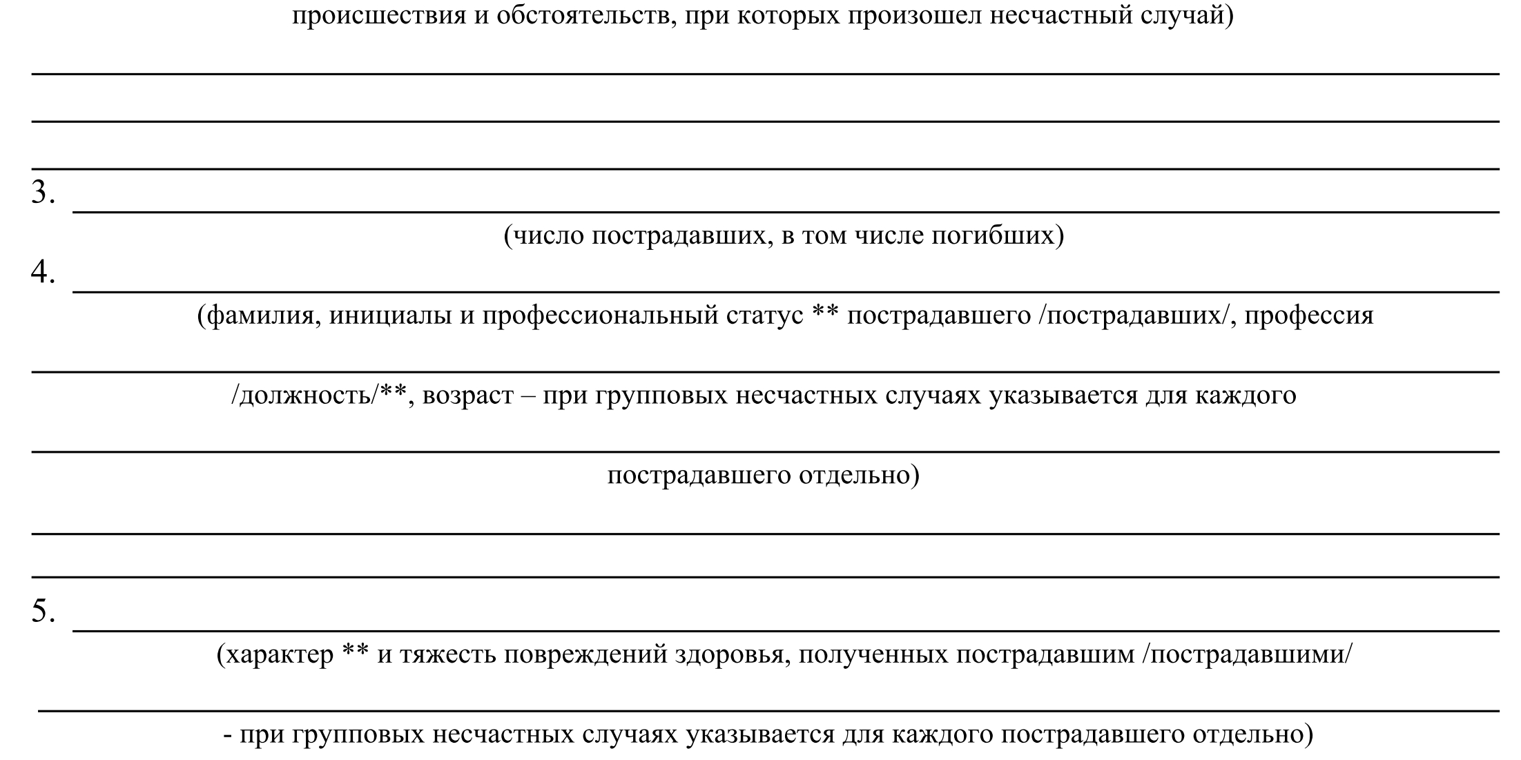 - Должность пострадавшего и род выполняемой им работы в момент происшествия;