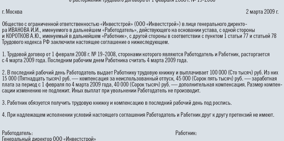 Какие выплаты положены в случае увольнения НУК?