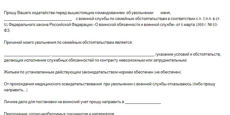 Условия увольнения с военной службы по семейным обстоятельствам указаны в ст. 34 Положения о порядке прохождения военной службы, в силу которой
