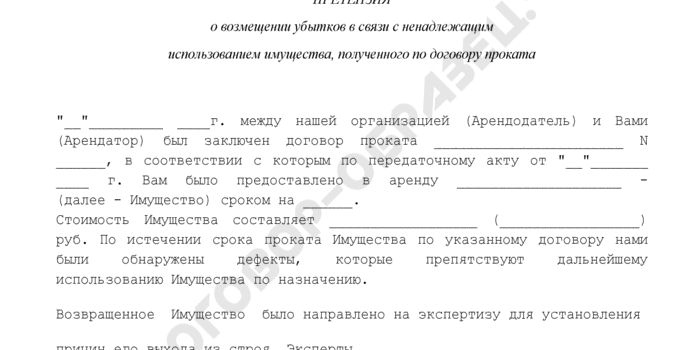 - Требование арендодателя о расторжении договора аренды и возмещении убытков в связи с тем, что арендатор использует имущество не в соответствии с условиями договора аренды или назначением имущества.rtf (Rich Text Format)