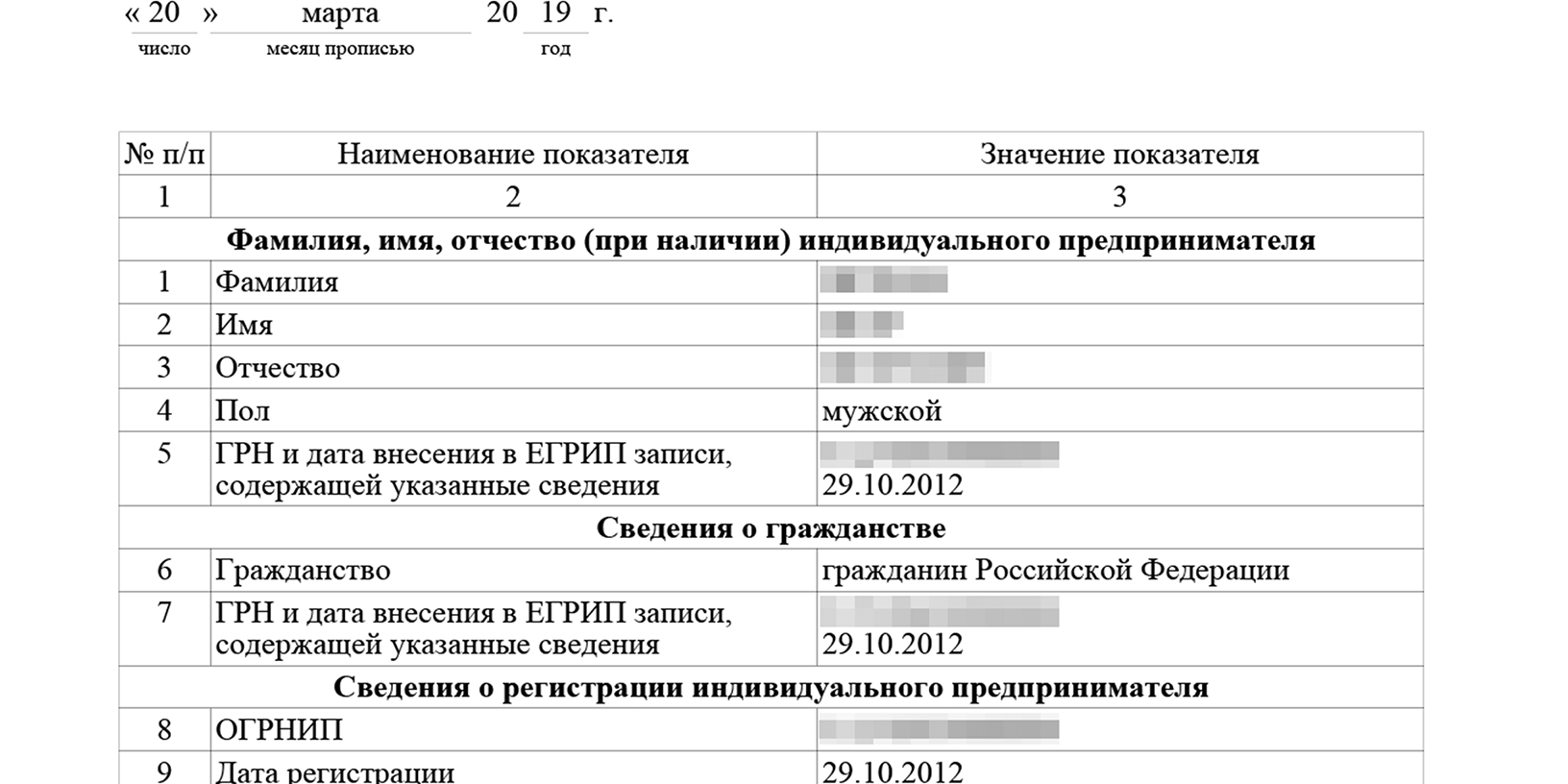 - Дата регистрации лица в качестве индивидуального предпринимателя;