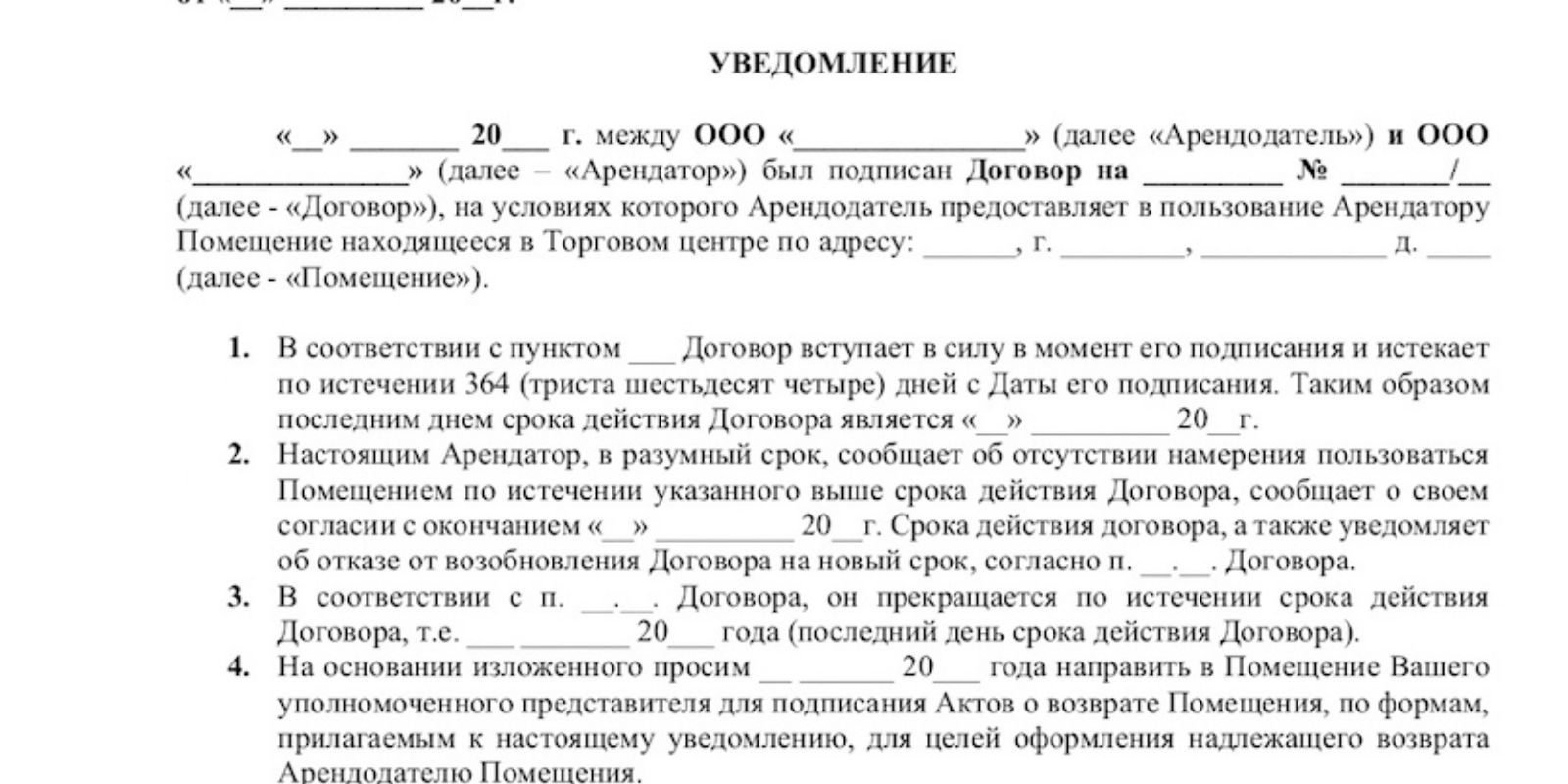 - Срок аренды.