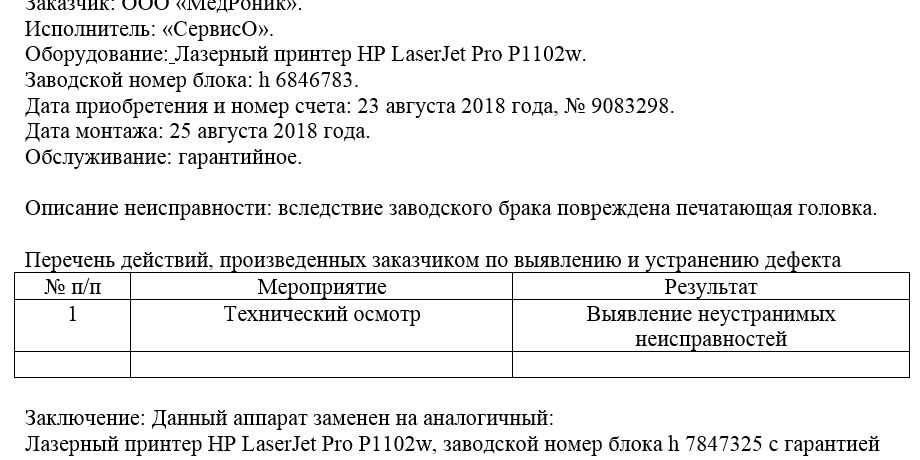 После этого делается вывод о необходимости замены оборудования. Здесь следует отметить, какое именно оборудование будет заменено.