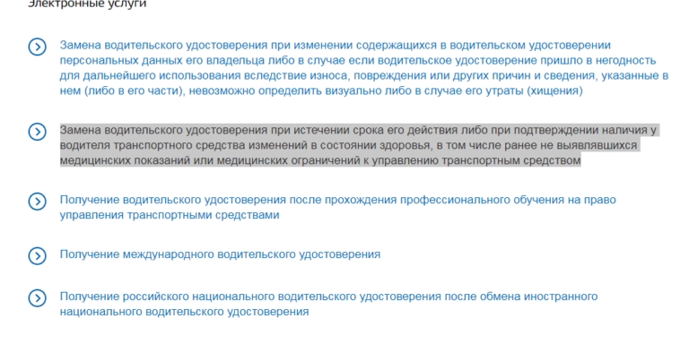 Здесь вам нужно выбрать, почему вы меняете водительское удостоверение. Чаще всего это истечение срока, поэтому рассмотрим эту процедуру, сопроводив для наглядности нашу пошаговую инструкцию иллюстрациями.