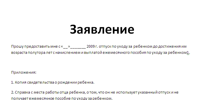 | Название документа | По центру документа пишется «заявление» |